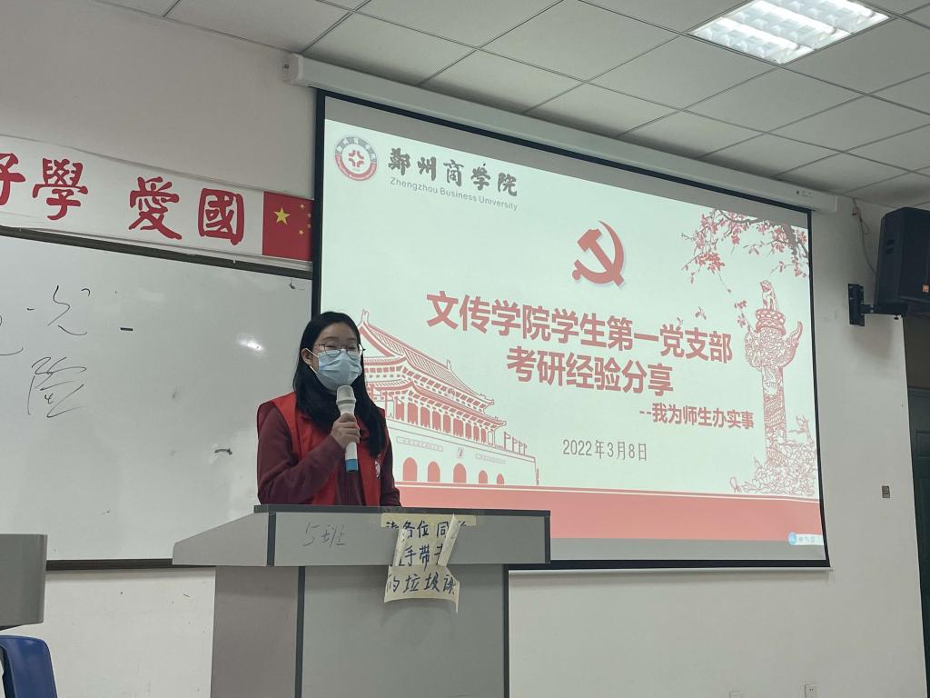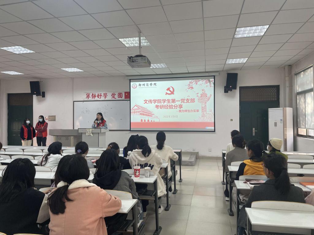 为帮助有意向考研的同学解决考研过程中遇到的各种问题,促进同学们的学习热情和考研激情,3月8日下午,我院学生第一党支部在艺术楼210教室举行毕业生考研经验交流分享会,会议邀请了往届考研学生代表来分享考研经验。