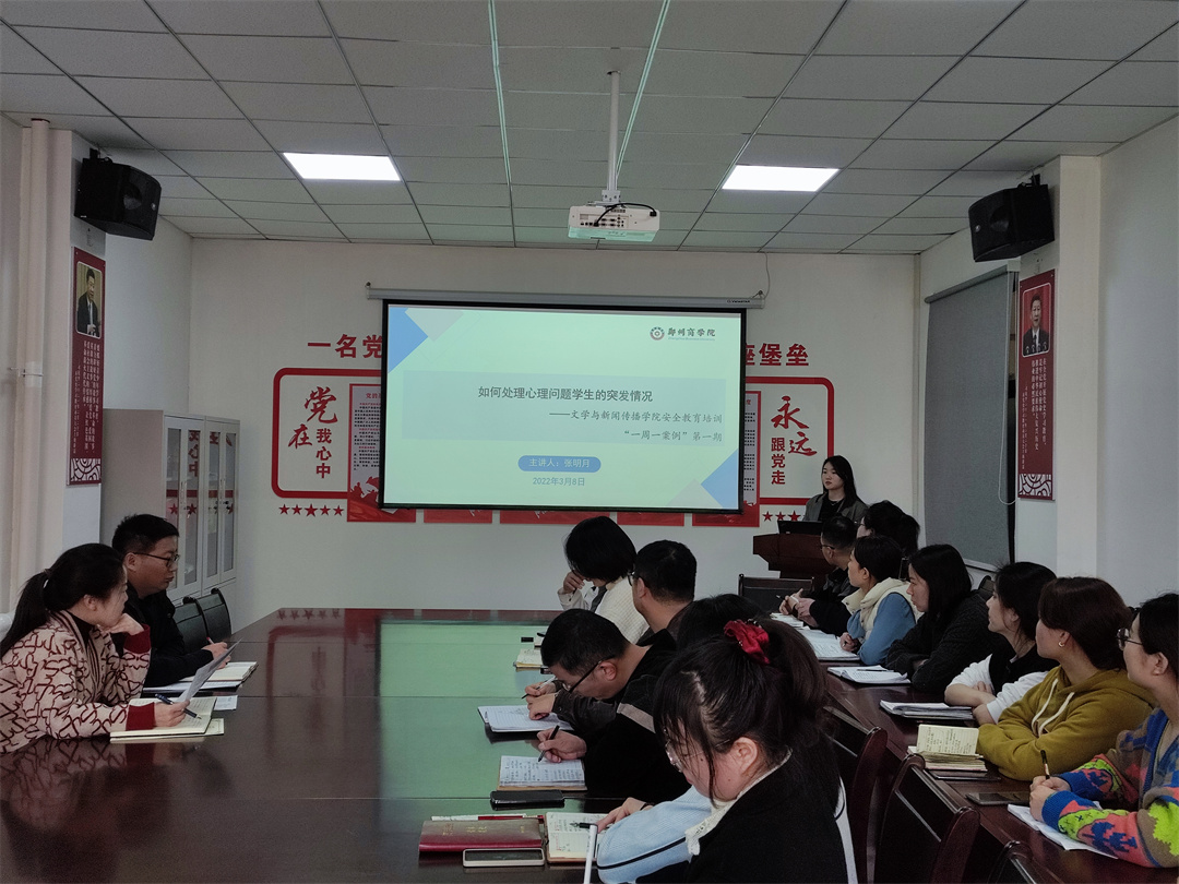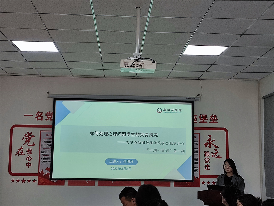 本次案例,辅导员张明月老师针对心理问题学生的偏激行为进行通过案例概述、案例分析、反思总结等三个方面进行讲授。张明月老师认为,面对这样的情况时应做到以下几点,一是注意谈心谈话的艺术,明确学生的诉求;二是保持心态的稳定,做好学生的心理安抚工作;三是培养班级信息员,重点关注特殊学生;四是引导班级舆论,避免不良后果。