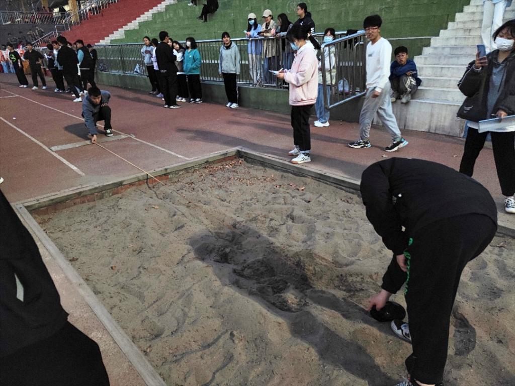参赛同学们半蹲、蓄力,奋力起跳,平稳落地,用跳远的方式体验“飞跃壕沟”。这看似简单的动作展现了我们文传学子的风采!
