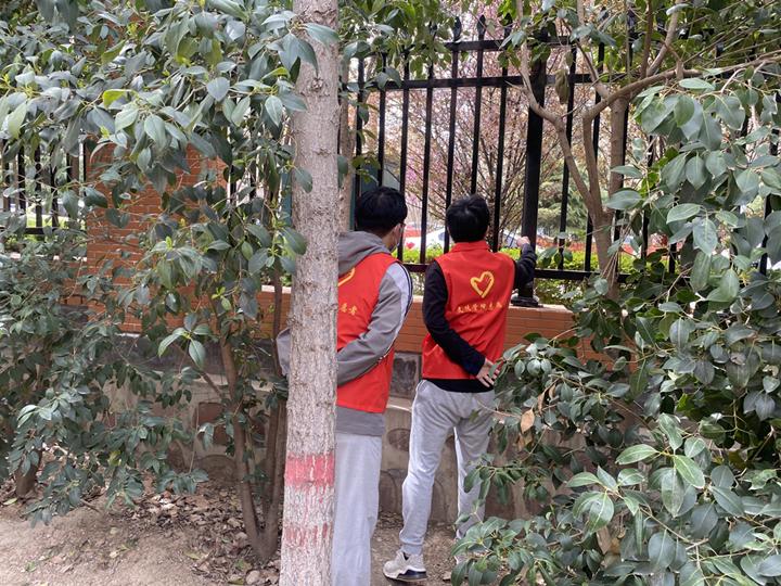 党员先锋队成员实施无死角的校园巡逻,分别在学院栅栏处、操场运动场地以及菜鸟驿站等地点开展巡查,监督同学们订取外卖、佩戴口罩、大型聚集、翻越围栏等情况。在值班巡逻的过程中,成员们的身影出现在校园的每一个角落、每一条小路。