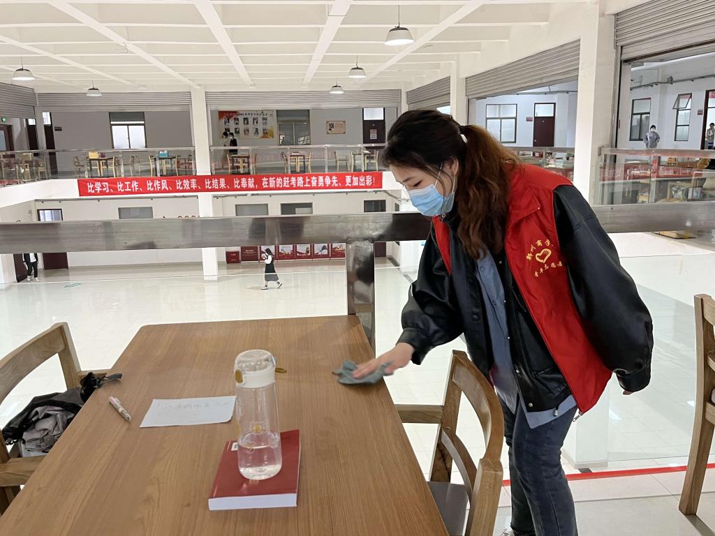 为提升学生学习环境,发挥学生自习室的育人功能,学生第五党支部学生党员对自力楼考研自习位进行了清洁打扫。负责清扫活动的同学们分工明确,各自带着清洁工具在划分好的区域进行清扫,有条不紊,清扫垃圾、擦去积灰,经过打扫的自习位干净整洁、焕然一新,为考研学子增添助力。