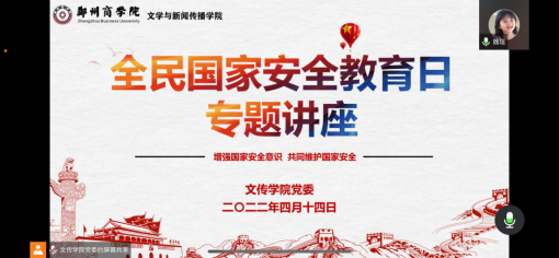 今年的4月15日是我国第七个全民国家安全教育日,在疫情防控的大背景下,为落实习近平总书记关于国家安全观的重要论述,普及学生的国家安全知识,提升广大学生爱国、强国、护国、卫国意识,我院在线上开展以“国安才能国治,治国必先治安”为主题的国家安全专题讲座。