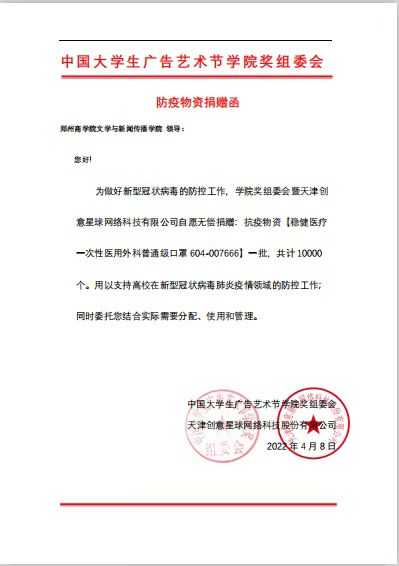 近日,中国大学生广告艺术节学院奖组委会向文学与新闻传播学院院捐赠1万只医用外科口罩,支援我院的疫情防控工作,我院在第一时间对物资进行登记,确保在疫情防控中发挥最大优势。
