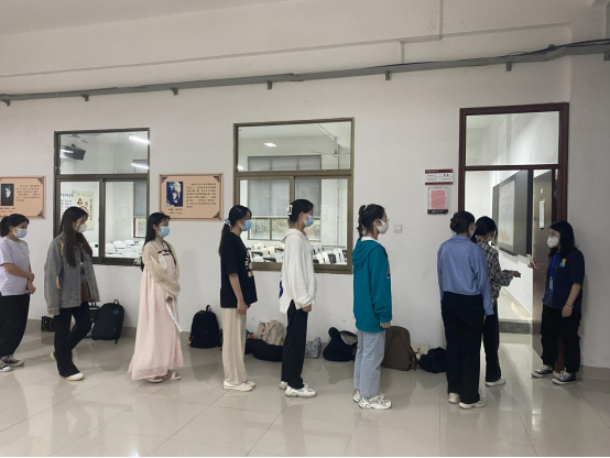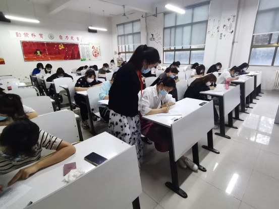 开考前考生们统一在考场外排队,等候监考老师测量体温,继而有序入场。在考试过程中,我院党委贾蓓书记和组织委员魏瑶老师进入考场进行巡考和监督,密切关注考生的答题情况;考生们严格遵守考试纪律,答题严谨,认真对待考试的态度更加坚定了向党组织靠拢的信念与决心。充分体现了一名入党积极分子无论在学习党的理论知识和思想上都积极向党组织靠拢的优良作风。