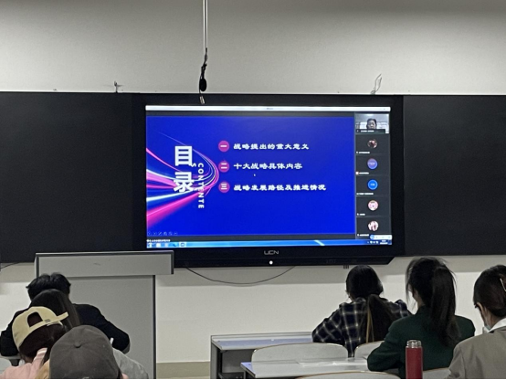 本次党课由马克思主义学院张艳红教授主讲,课程内容以“实施创新驱动、科教兴省、人才强省十大战略”为主题,围绕战略提出的重大意义、十大战略具体内容以及战略发展及推进情况三个方面全方位解读了”十大战略”的形成过程以及发展情况。另外针对锚定“两个确保”确保高质量建设现代化河南及确保高水平实现现代化河南和全面实施“十大战略”所包含的内容进行了一系列的剖析与讲解。最后,张教授激励全体学员争取早日入党,做一名优秀的党员以便于在人才强省,科教兴省的战略中发挥更大的作用。国兴则家兴,省兴则家更兴,提醒各位不辜负时代不辜负人生。