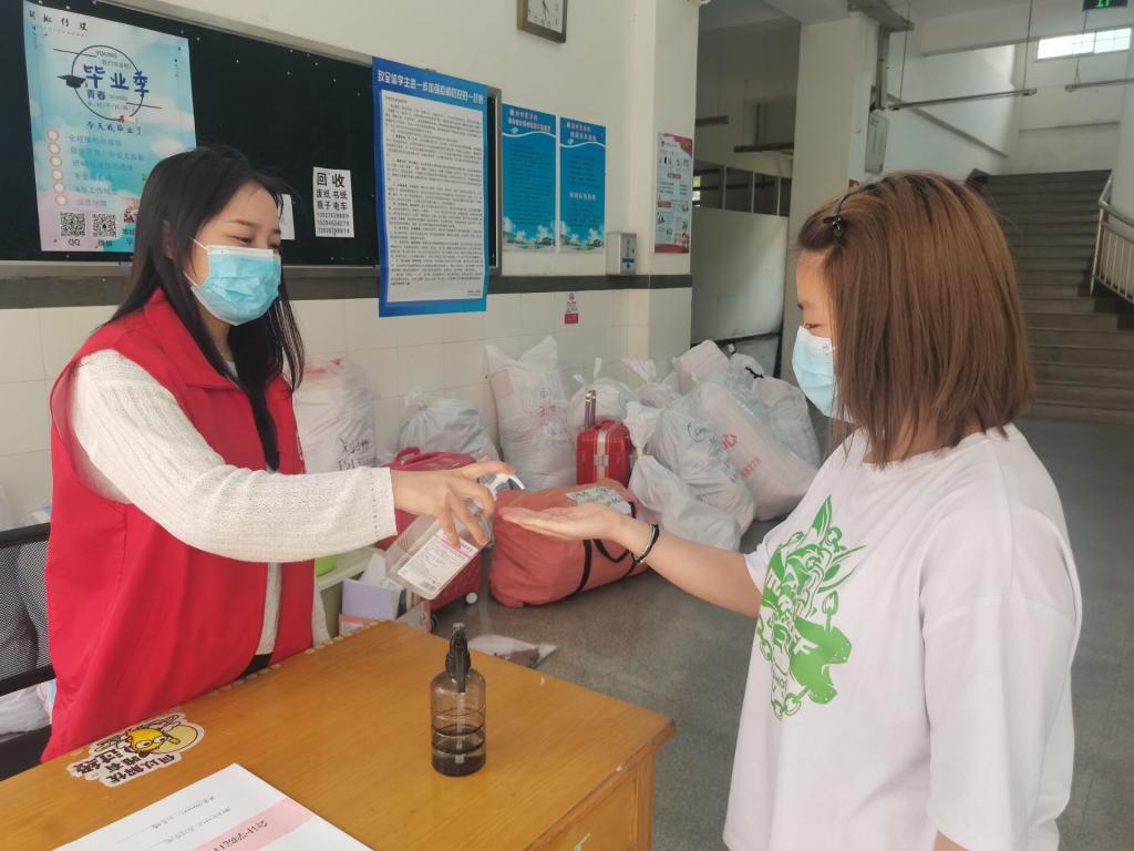 活动开始,由韩慢慢同学向参与活动的学生党员进行关于宿舍消杀的主要事项和执勤过程中的注意事项。各个学生党员穿上文传学院志愿者马甲深入同学宿舍进行志愿活动。学生党员在各个宿舍楼门口设立体温消毒点,对来往的学生进行体温测量,手部消毒,督促提醒学生佩戴口罩。在这防疫的特殊时期提醒同学们一定要做好个人防护,提高警惕,切勿麻痹大意。另外也要对同学们的心情进行调解,保持作息饮食规律。