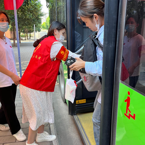 学生党员们统一佩戴党员志愿者袖章,分工协作,密切配合,分散到校门口,宿舍楼下,摆渡车各个点位,积极发挥奉献精神,以饱满的热情投入到工作中,入校身份核验、行李消杀、体温检测、行李搬运,为学生提供了热情周到的服务,确保学生安全有序平稳的返校,从校门口到宿舍楼,处处都活跃着学生党员志愿者们活力可亲的身影,充分展现出敢于奉献、勇于担当的新时代党员风貌。