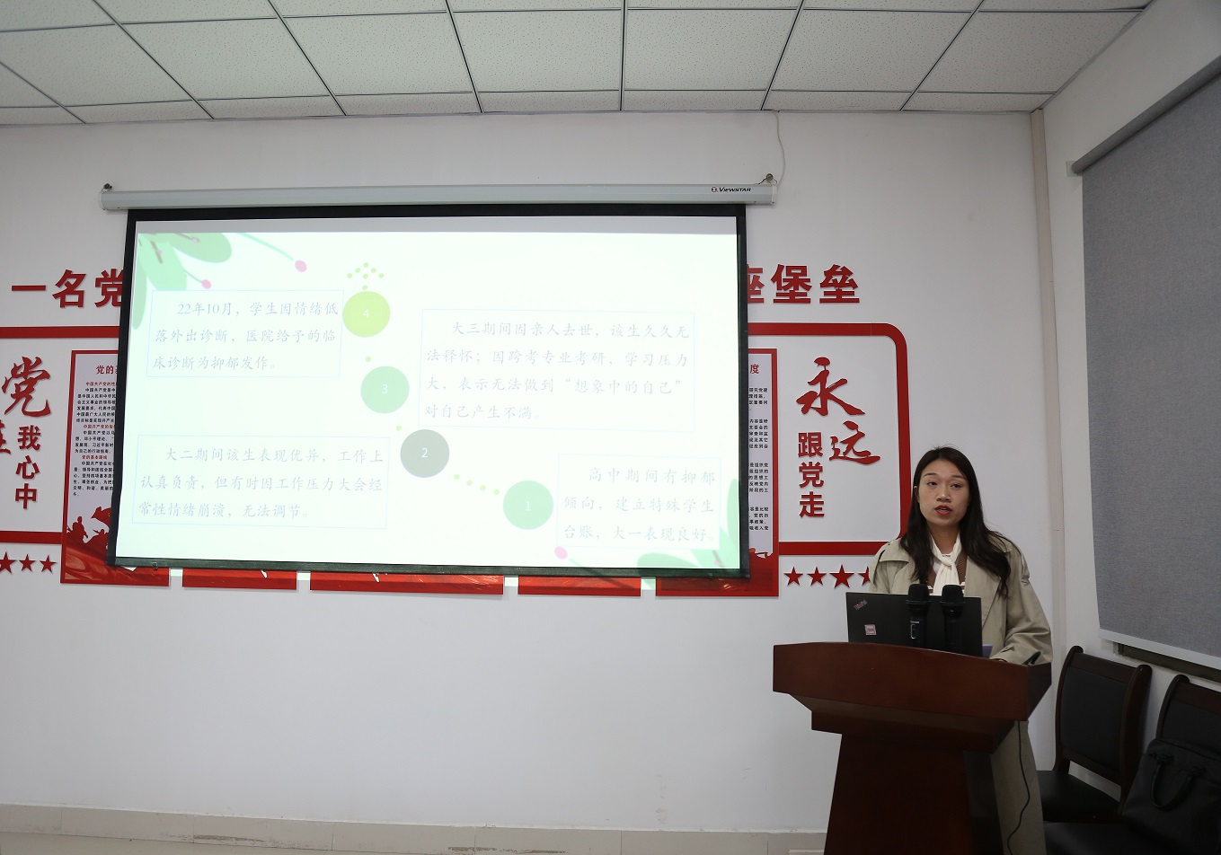 潘亚萍老师以工作中遇到的内心敏感学生作为案例,结合该生日常生活和以往经历分析了该生抑郁和心理障碍产生的自身原因及外部条件,讲述了针对该生的问题对其进行多次疏导谈心,采取老师、同学和家庭多方联动的措施引导该生心态向好发展的方式方法。