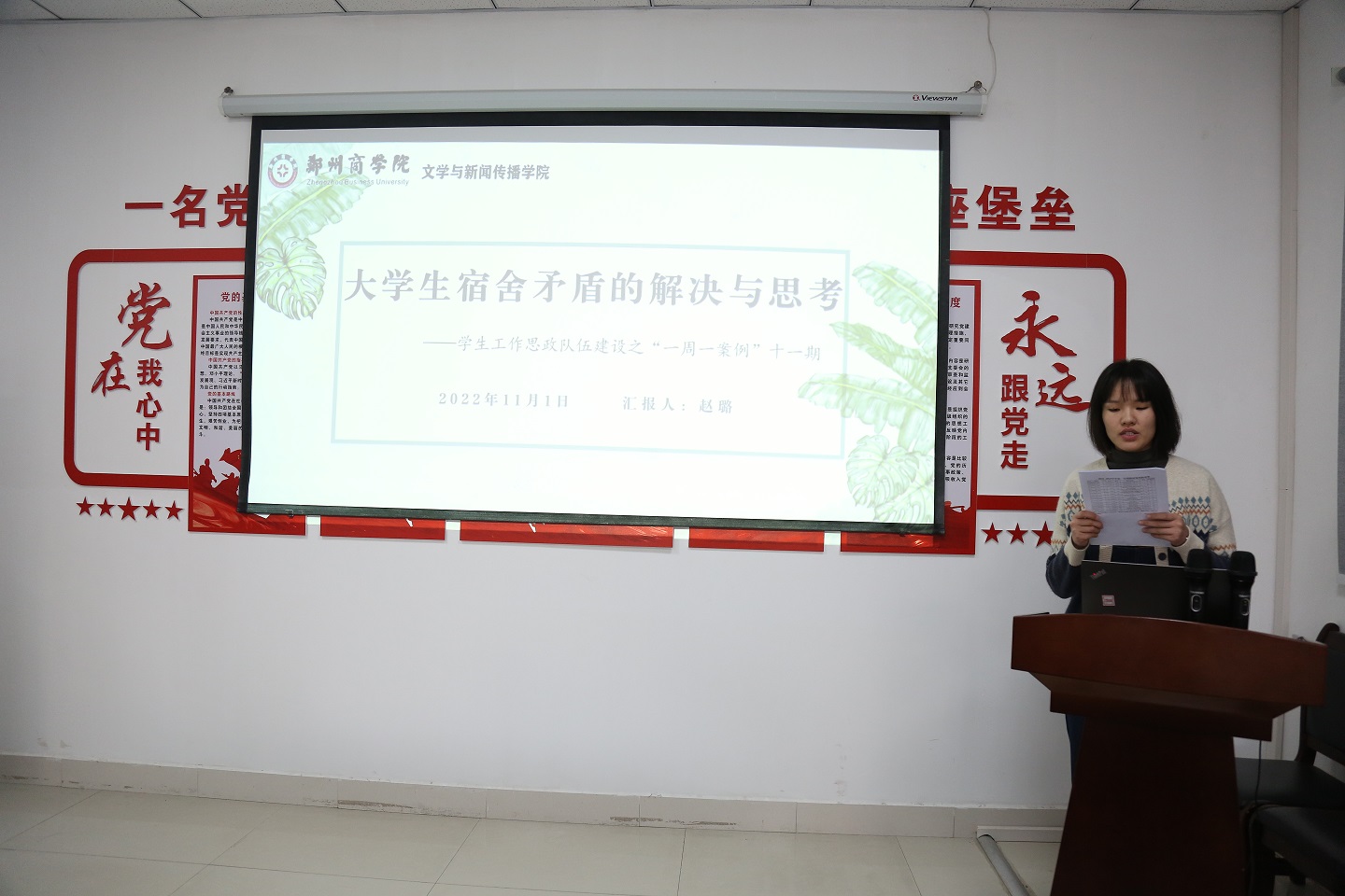 11月1日下午,我院开展学生工作思政队伍建设之“一周一案例”第十一期。本期由辅导员赵璐老师主讲,主题为“大学生宿舍矛盾的解决与思考”。