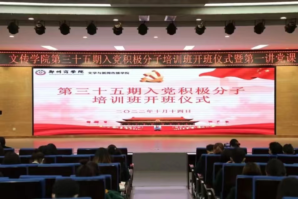 10月13日,培训班开班仪式在自力楼报告厅举办,我院党委书记贾蓓、团委书记王凯、各党支部书记及全体辅导员参加开班仪式。经过各团支部推荐,学院党组织审核把关,报经校党委审批,本期培训班共计131名学员参与。开班仪式上,贾蓓书记对此次能够参加培训的同学表示祝贺,同时对学员们提出要求:一是要加强政治学习,严格要求自己做到学有所获,用理论武装头脑,并坚持理论联系实际。二是加强纪律观念,树立正确的学习目的,端正学习态度,保持良好学风,提高学习的实效性。三是强化党性意识,要端正入党动机,坚定信念跟党走,做到思想、组织、行动上入党。最后,希望大家在学习生活中切实发挥引领作用,做到学有所获、学有所得、行有所效,争取早日加入中国共产党。
