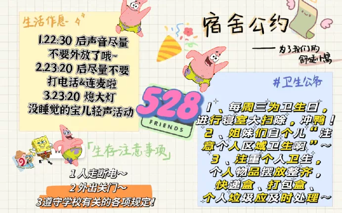 为营造礼让,整洁、温馨的学生宿舍环境,加强学生宿舍文化建设,围绕立德树人这一根本任务,提升学生宿舍育人成效,开展“宿舍礼仪公约大赛”制作活动。