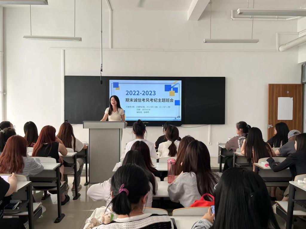 学院辅导员通过主题班会的形式,分析解读考试违规违纪典型案例,警示全体学生诚信应考,增强学生诚信意识,签署诚信考试承诺书,激发学习动力,树立求真务实、严谨治学的学风导向。