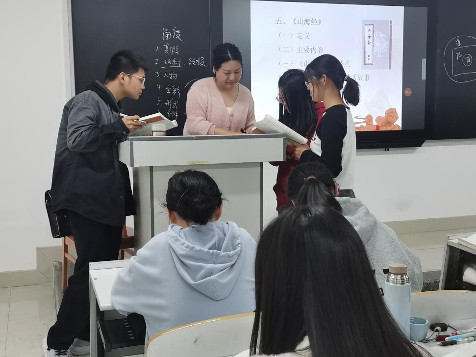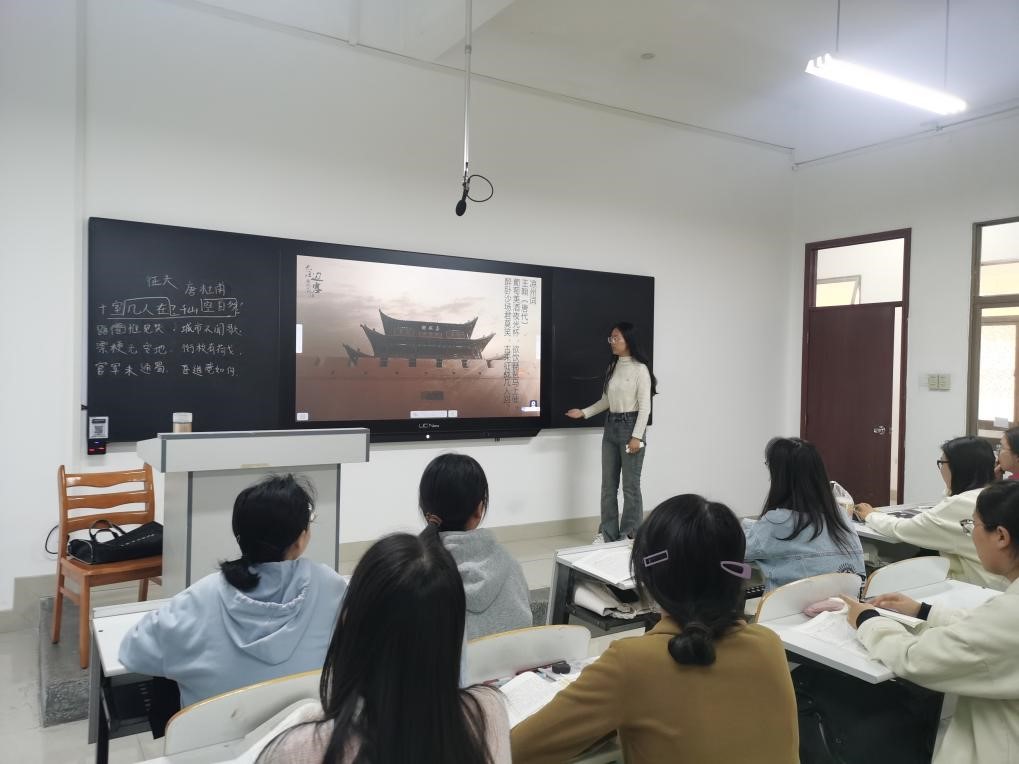 值得一提的是,在教学内容上,马老师注重运用大量的例证讲解民族文化传统,生动地揭示了民族文学儒释道的精神价值,同时也揭示了文学形式特征的发展路径;在授课方法上,马老师注重运用情景教学法,通过图片、视频等多媒体信息,带领同学们一起走进古代文学创作的情景,感知文学魅力;在课堂形式上,每节课前10分钟都会安排学生讲授古诗词,既丰富了同学们的知识,也锻炼了大家讲课的能力,为今后职业发展奠定了基础。