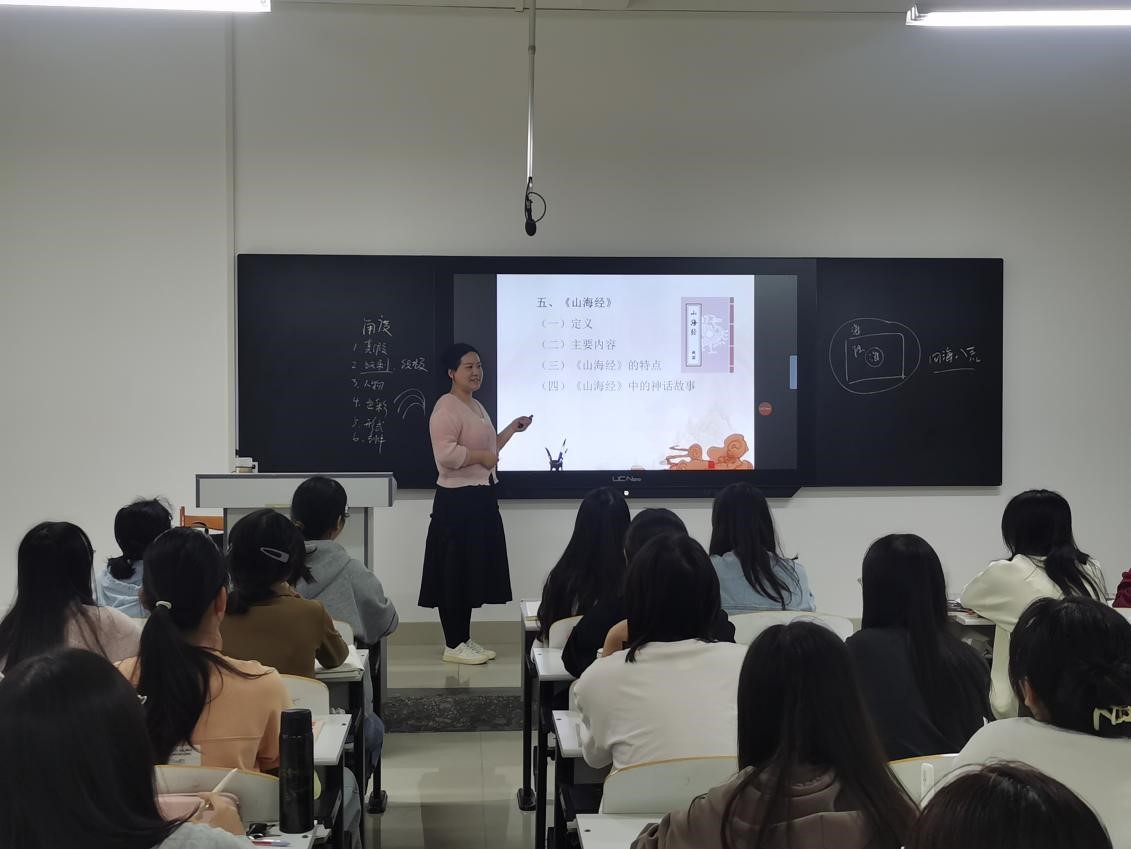 10月9日,在H210教室,文传学院专职教师马若晗正在专注于23级汉本1班《中国古代文学I》课程的授课。本堂课以突出教学重点——“中国文学发展过程的特征”为核心,重点梳理中国古代文学发生发展的历史及特点。在课堂上,马老师授课语言精炼、板书规范,生动地讲授教学内容,出色地完成了教学任务。