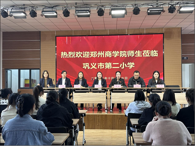 巩义市第二小学赵晓红书记等多位校领导亲自在学校门口迎接,并表示了热烈的欢迎。赵书记介绍了巩义市二小是本市特色品牌学校,优秀教师众多,学校师资、环境等非常丰厚,同时也表达了对两校搭建实习就业平台的大力支持和期待。