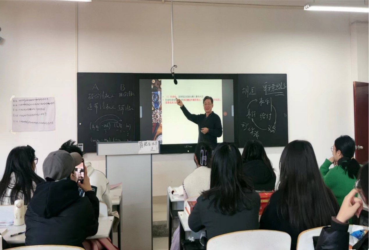 课程设置方面,依据国家法律资格考试的要求,开设了相对应的课程。四大理论法:习近平法治思想概论、法理学、宪法学、中外法制史;四大基本法:民法学、商法学(公司法、破产法、票据法、保险法、证券法等)、刑法学、行政法学;三大诉讼法:民诉法学、刑诉法学、行政诉讼法学;三大国际法:国际公法、国际私法、国际经济法;四大专业核心课程:知识产权总论、专利法、著作权法、商标法;六大实操课程:法律文书写作、计算机基础、知识产权检索与应用,三大诉讼法法律实务。在此基础上,强化提升开设了法理学、宪法学、民法学、刑法学、中国法制史考证课程。将国家法律资格考试课程前置到前五个学期,留给学生一年的准备时间。