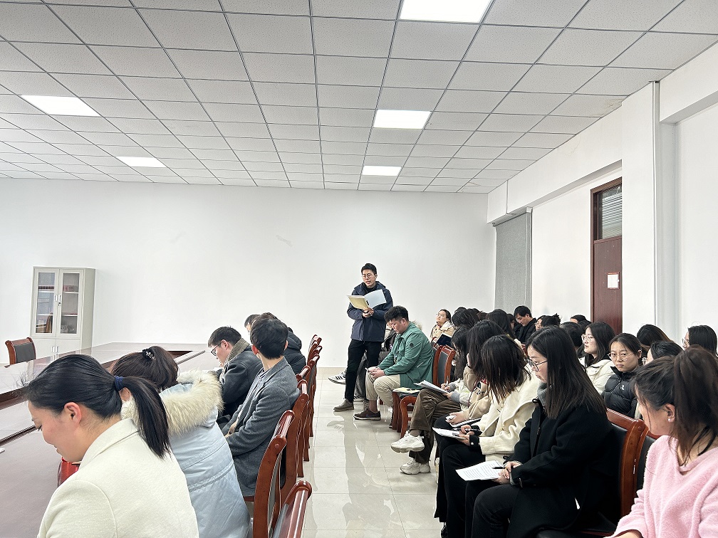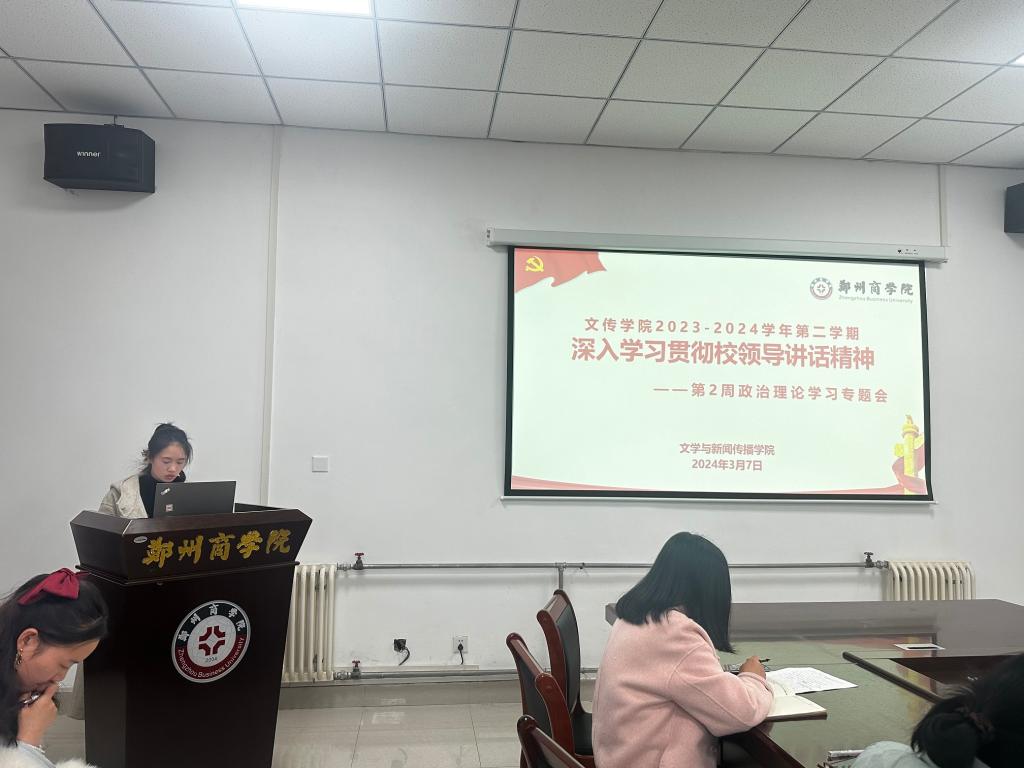 为深入学习校领导讲话精神,确保新学期各项工作的有序开展,落实立德树人根本任务。3月7日14点30分,文传学院于自力楼216会议室开展第二周政治理论学习专题会,文传学院全体教职工共同参加,会议由党委书记贾蓓主持。