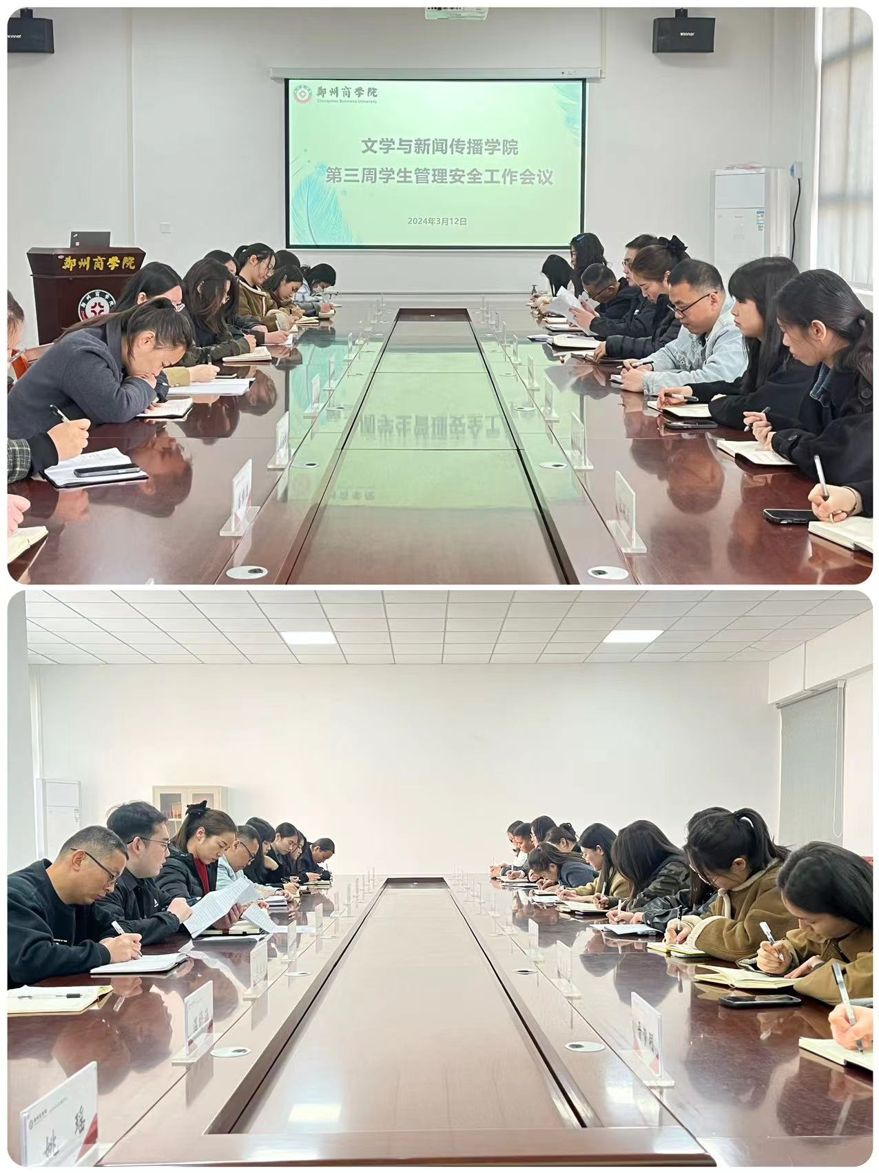3月12日,文传学院召开第三周学生管理安全工作会议,文传学院党委书记贾蓓、团委书记王凯及全体辅导员参会。