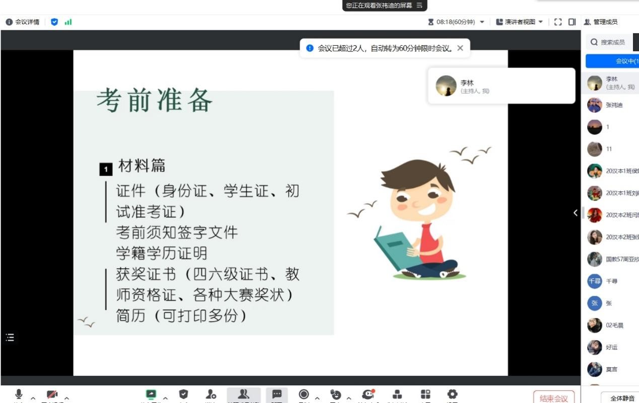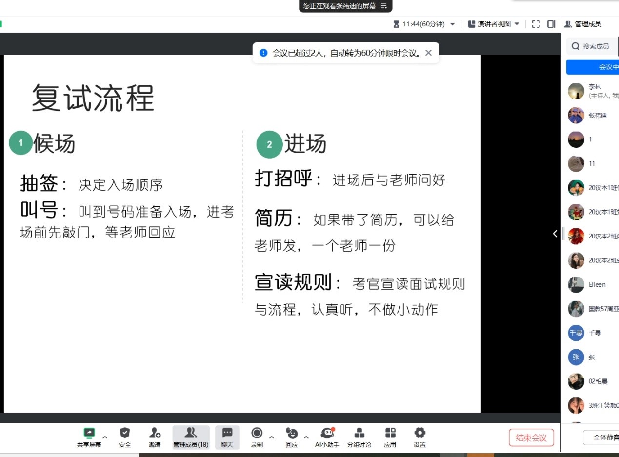 本次考研复试指导会圆满完成,同学们收获颇多。同时也希望同学们铭记:逐梦之路没有“躺赢”的可能,也没有“躺平”的捷径,唯有砥砺笃行,方能铸造理想的丰碑。预祝各位考研学子一路生花,顺利上岸!