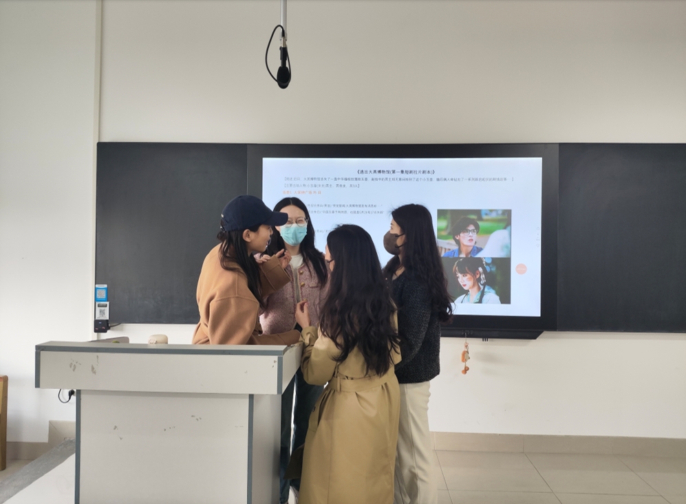 活动中,宋秀老师对她所教授的课程《短视频剧本创作》,提出了理论、视频、剧本分析相结合的模式,将理论知识融入实践当中,丰富理论知识的内涵,拓宽实践应用场景,为学生理解并运用相关理论知识提供了更加清晰、细致的使用方法。陈静老师在《宋代文学——刘永词的新变》的授课过程中,不拘泥于“刘永”个人的诗词创作特点,旁征博引,联系同时代同时期的其他诗人的特点,以北宋时期的社会景象为背景,细致全面地分析了刘永在诗词创作道路上的突破和创新。丁宇薇老师在讲授《媒介经营与管理》的引论时,细数新媒体时代和传统媒体时代中媒介的更替,并进行对照分析,以实际案例映照章节中所提到的“科学技术是媒介发展的第一推动力”。