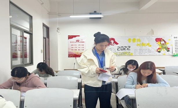 教育学教研室主任滕菲菲等考务人员到现场巡考