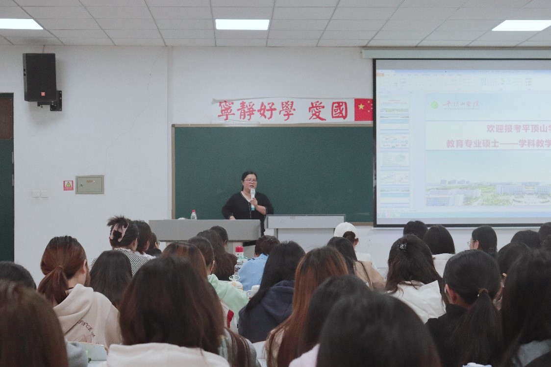 10月16日,平顶山学院文学院副教授孟伟伟对我院汉语言文学专业的广大学生进行学科教学(语文)专业硕士的招生宣传工作,旨在吸引更多优秀学子报考,进一步推动学院高层次人才培养工作的发展。
