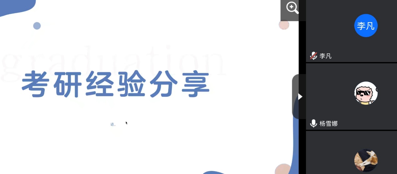 通过举办考研经验交流会、开设考研自习室、提供专业辅导等方式,为考研学子提供全方位的支持和帮助。本次线上考研复试经验交流会的成功举办,不仅为考研学子搭建了交流学习的平台,也体现了学院对学生的关心和关怀,助力学子们在考研路上乘风破浪,成功“上岸”。