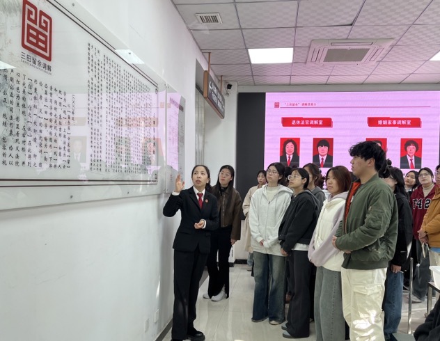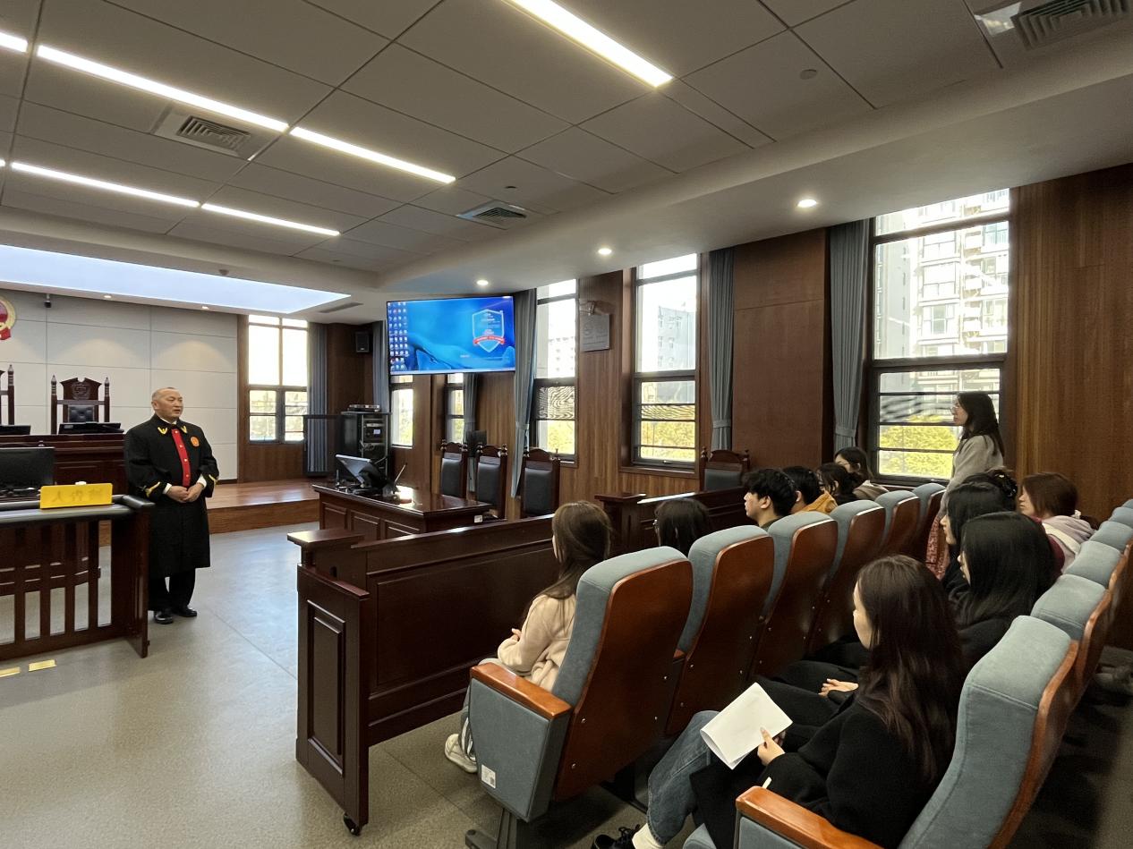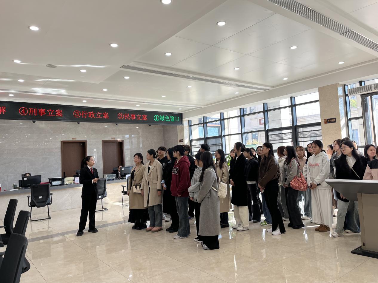 在法院工作人员的带领下,师生们参观了诉讼服务中心、羁押室和审判庭等场所,详细了解了法院的工作流程、信息化建设成果以及知识产权案件审理的相关情况。通过实地参观,同学们对法院的日常工作有了更加直观地认识。