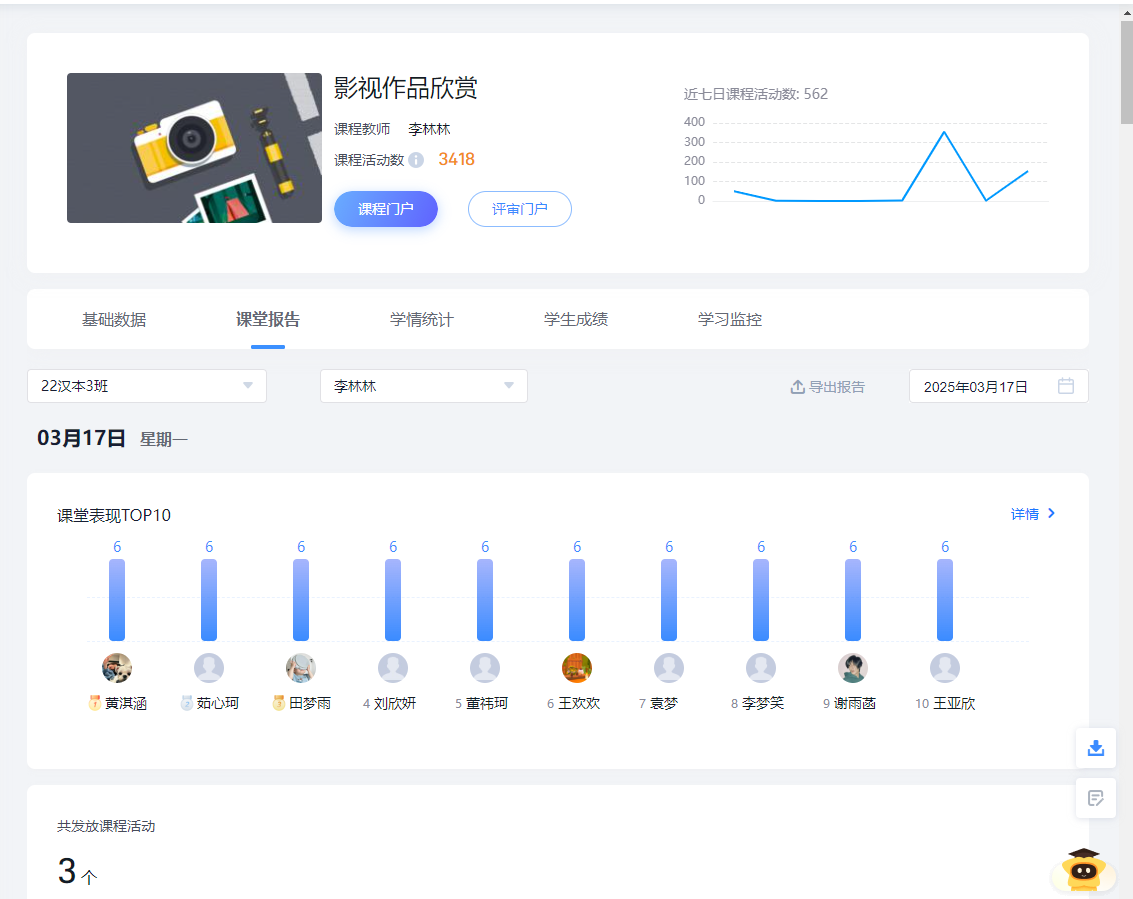 经过这堂《影视作品赏析》课程的学习,学生们收获颇丰。从课堂表现来看,学生们的参与度极高,在超星学习通中表达了自己的观点和见解。他们对影视作品的分析更加深入、全面,能够从多个角度阐述表演技巧与情感表达之间的关系,并且能够运用所学知识对其他影视作品进行赏析。这表明学生的学习兴趣被充分激发,学习能力得到了显著提升。