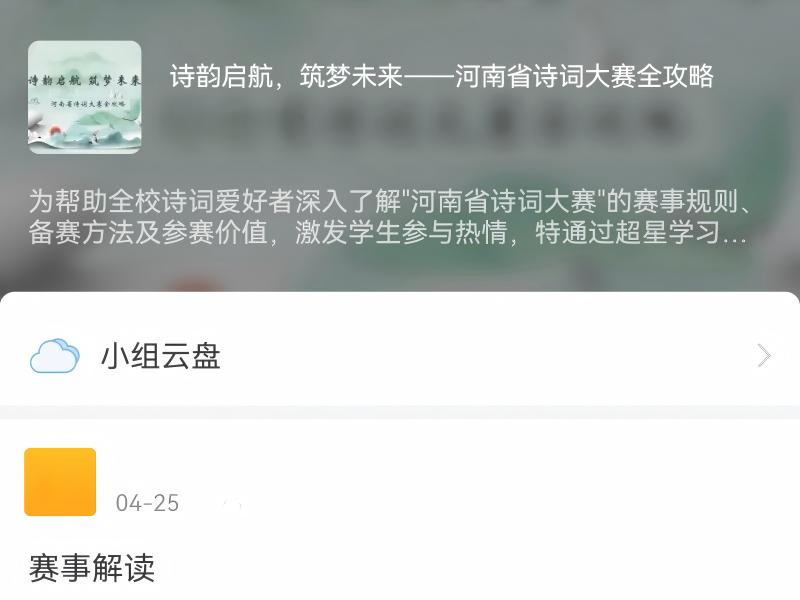 为弘扬中华优秀传统文化,激发学生参与学科竞赛的热情,文学与新闻传播学院于2025年4月25日正式推出“诗韵启航,筑梦未来”河南省诗词大赛超星平台专题活动。此次活动通过超星学习通平台开展,旨在帮助全校诗词爱好者深入了解赛事规则、备赛方法及参赛价值,为即将到来的大赛做好充分准备。
