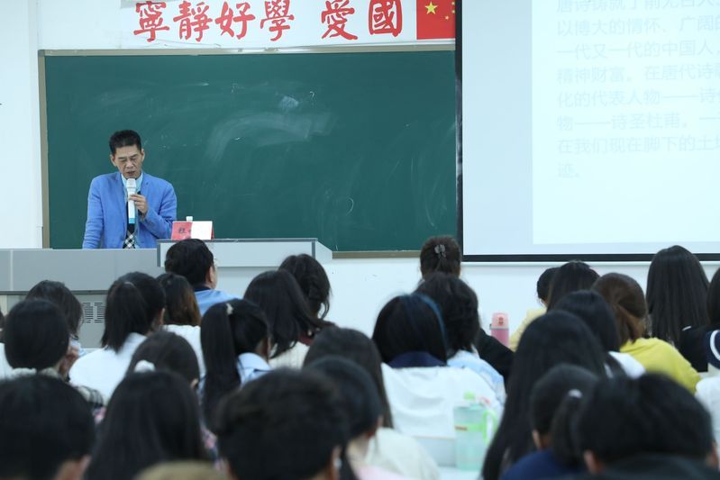 在杜甫文化专题报告中,杜甫文化研究中心、文学教研室教师及200余名同学共同聆听了报告。报告会由陈静老师主持。报告中,程韬光教授以渊博的学识和独特的视角,深入浅出地为师生们讲解了杜甫的生平事迹、诗歌创作及其背后的文化内涵。他通过对杜甫诗歌的精彩解读,展现了杜甫作为“诗圣”的伟大情怀以及其作品在当代的重要价值。程教授指出,杜甫的诗歌不仅是文学的瑰宝,更是中华民族精神的象征。他强调,杜甫的诗歌充满了对国家和人民的深切关怀,这种关怀在当今社会依然具有重要的现实意义。程教授还分享了自己在创作杜甫相关作品过程中的感悟和体会,让在场师生深刻感受到了杜甫文化的魅力。讲座现场气氛热烈,程教授生动的讲解赢得了师生们的阵阵掌声。师生纷纷表示,通过这次报告,对杜甫文化有了更深刻的理解,也更加坚定了传承和弘扬中华优秀传统文化的决心。