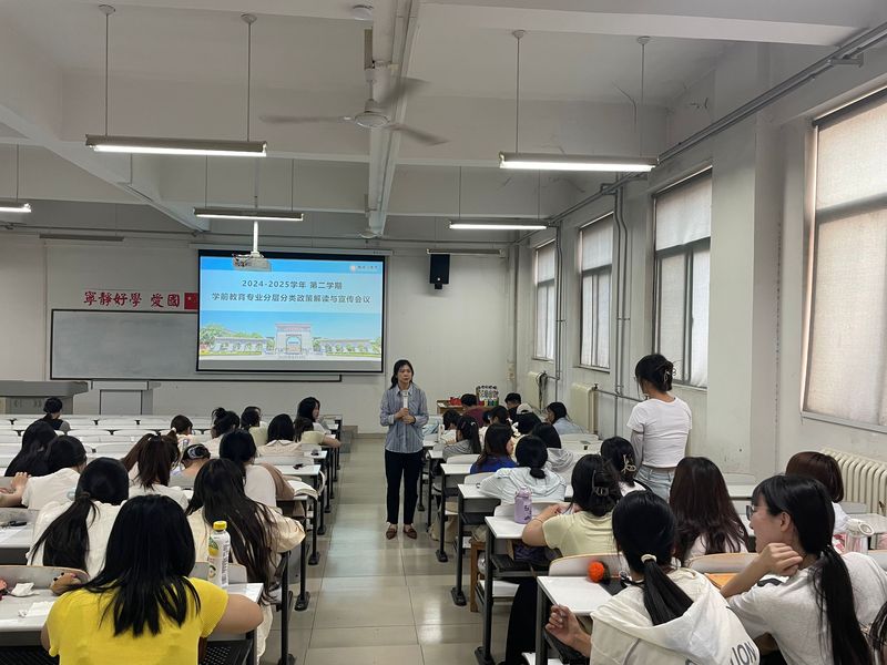 会上,各教研室主任深度剖析分层分类教学政策的内涵与实施路径。他们围绕学院精心构建的考研、就业课程体系,从课程设置逻辑到教学资源配置,为学生勾勒出清晰的学习蓝图。在考研专题分享环节,结合近年来考研形势变化趋势,以及学院在考研辅导中取得的成果,为有深造意向的学生提供了涵盖院校选择、复习规划等方面的“定制化”指导,让学生们对考研之路有了更明确的方向。在就业专题分享环节,学院将依托与优质实习基地建立的深度合作关系,为学生打造沉浸式实践平台,通过课堂理论与一线教学场景的紧密结合,全面强化学生的教学技能与职业素养,深度契合专业人才培养对实践能力的高要求。无论学生选择考研还是就业,学院都将提供精准适配的资源与指导,为其成长之路保驾护航。
