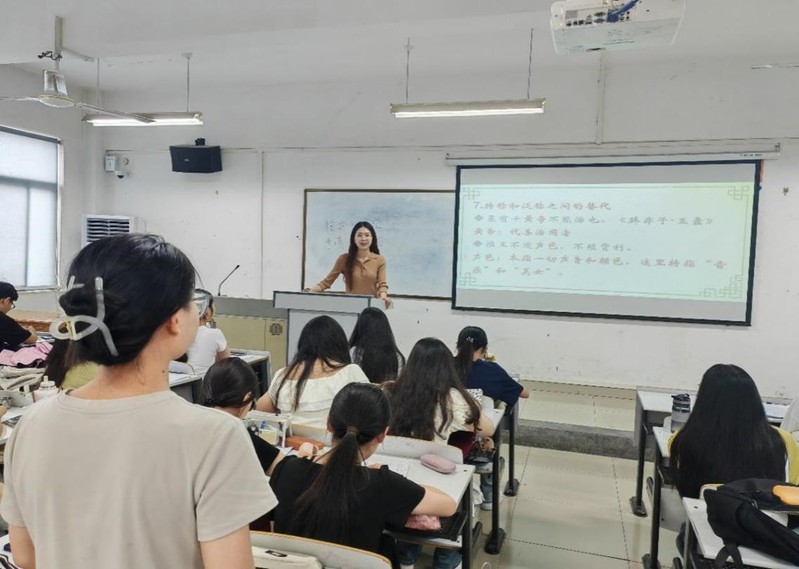 从教学检查情况来看,汉语言文学教研室的任课教师们都能根据人才培养目标,规范地完成教学大纲,设置教学进度表,各项教学资料准备充分。其中,张永青老师讲授《文字学》,通过生动的案例和互动设计,成功引导学生进入文字学的研究视野,为后续课程奠定了良好基础。此外,她上课期间与学生互动频繁,讲课逻辑清晰,PPT制作详美,板书规范,展现出文学教研室教师备课严谨的态度。陈静老师讲授《中国古代文学Ⅲ》,以古典词作叩开文学之门,引导学生结合课堂所学,梳理初唐四杰的文学成就与作品特点,培养学生的考点分析能力与知识整合能力。禹月娜老师讲授《语文课程与教学论I》,使用思维导图,逻辑清晰将课程与教学、课程论与教学论之间的关系,教学与教学论等概念通过思维导图清晰地展现出来,有助于学生把握教学主要内容。各位教师们都能够提前进入教室,做好上课准备,课件详美,板书工整,授课认真,精神饱满。学生们听课状态积极,课堂气氛活跃。