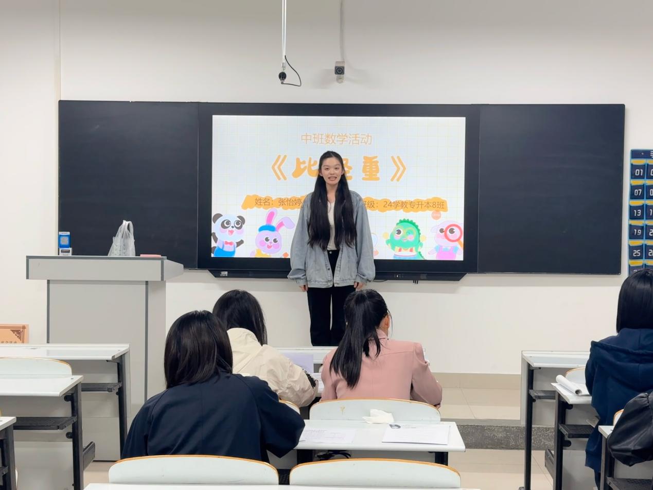 为锤炼师范生教学基本功,提升专业素养与综合实践能力,并为省级比赛选拔优秀人才,2025年9月18日下午,文传学院于自力楼H204教室举办第二十三届高等学校师范类专业毕业生教学技能比赛校内选拔赛。本次比赛面向学前教育专业毕业生,旨在全面考察与展示其教学技能与专业风采。