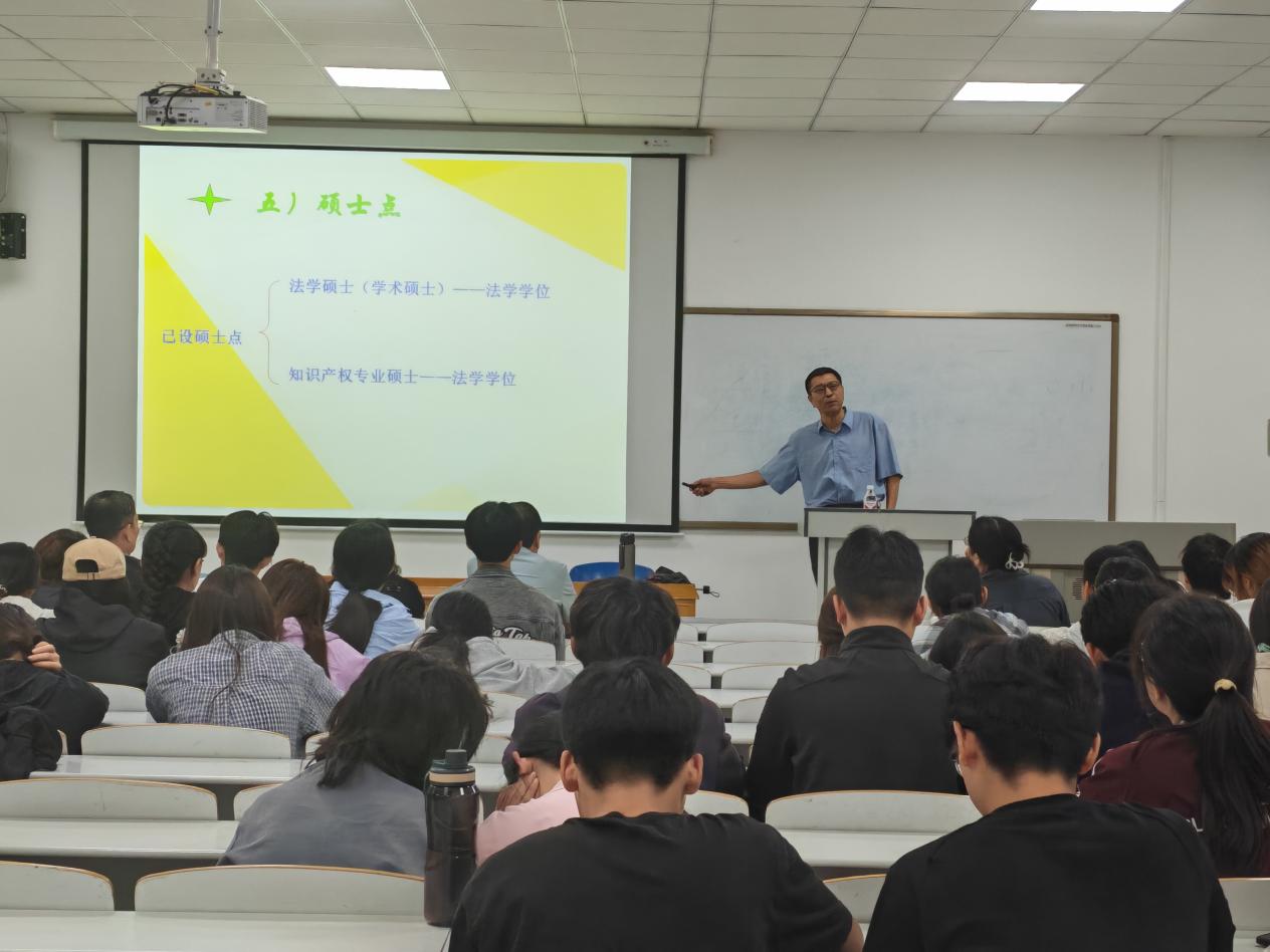 为帮助文学与新闻传播学院知识产权专业学子明晰就业方向、明确考研目标,2025年9月17日,河南工业大学法学院李文江教授受邀莅临我院,开展了一场内容丰富、干货满满的考研宣讲会。知识产权专业全体学生参与本次活动,法学教研室主任程果主持。