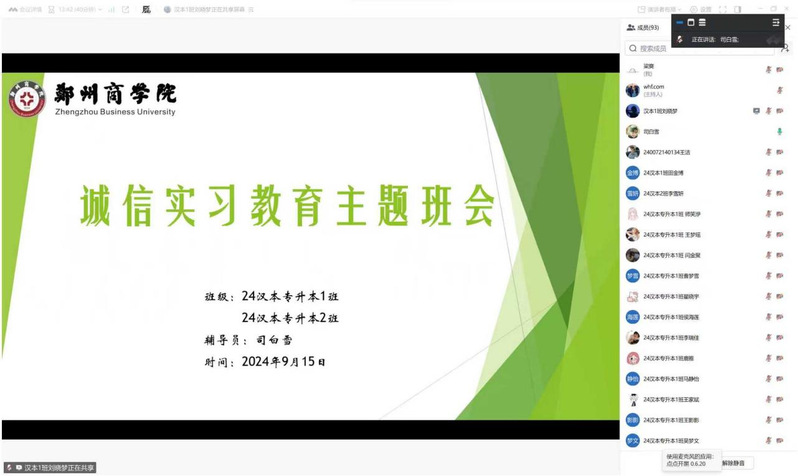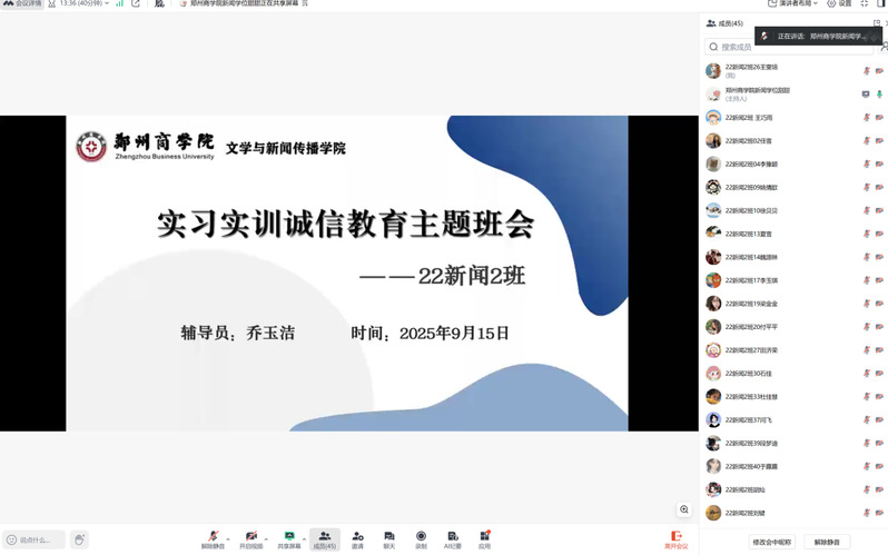 会后,2026届毕业班辅导员陆续组织线上实习实训诚信教育主题班会。班会上,辅导员向学生强调了实习实训在教学培养环节中的关键作用,并严肃申明,一旦发现存在虚假实习等不诚信行为,严格按照《999策略白菜手机论坛学生管理规定》第五章第五十五条第四款:“代替他人或者让他人代替自己参加考试、组织作弊、使用通讯设备或其他器材作弊、向他人出售考试试题或答案牟取 利益,以及其他严重作弊或扰乱考试秩序行为的”、第六款 “违反本规定和学校规定,严重影响学校教育教学秩序、生 活秩序以及公共场所管理秩序的”、第八款“屡次违反学校 规定受到纪律处分,经教育不改的。”可以给予开除学籍处分。