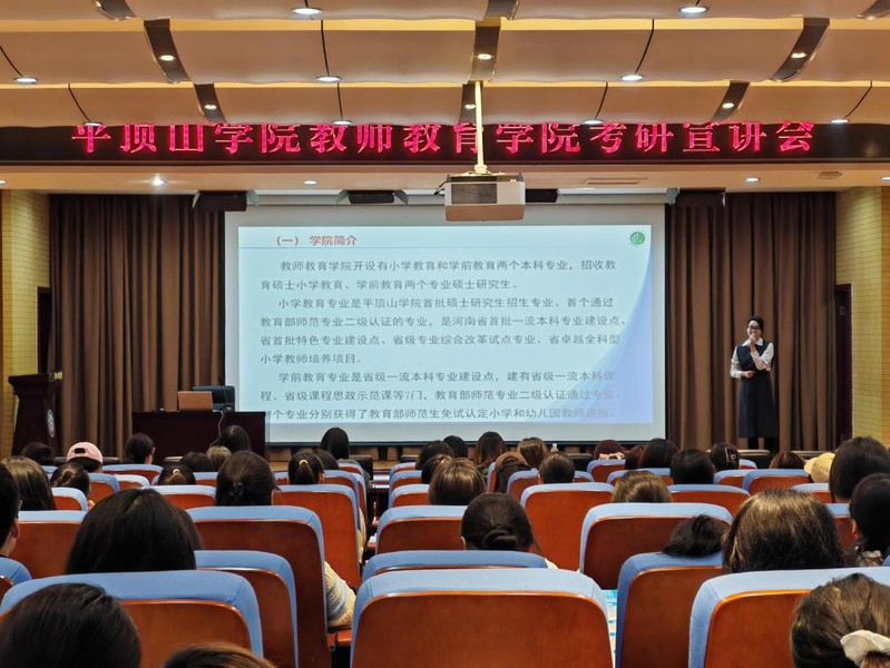 9月23日,平顶山学院教师教育学院党委书记李志华、副院长王秋歌、小学教育系主任曹丽乐受邀莅临我院,于图书馆五楼学术报告厅为我院有意向报考教育硕士的学子们带来了一场内容详实、干货满满的招生宣讲会。我院院长石璐、副院长曹萌出席活动,会议由汉语言文学教研室主任张永青主持。