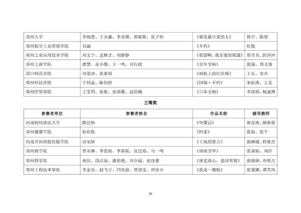 其中,荆晨阳老师参赛的作品《岳阳楼记》在教师组比赛中脱颖而出,荣获一等奖。由张娇娇、许明月老师指导,庾佳、段洁琼、潘彩艳、刘少丽、张佳豪同学参赛的作品《请党放心,强国有我》、由张寅韬、刘洋老师指导,曹亚琳、李思雨、李嘉妮、沈佳瑶、马一鸣同学参赛的作品《诗颂芳华》荣获大学生组三等奖。