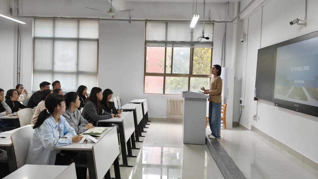 随后,陈天顺教授对新教师的汇报课进行细致评议,既肯定了教学过程中的亮点,也指出了需要改进的地方。同时,陈教授结合自身数十年教学经验,围绕 “如何快速适应课堂教学节奏”“怎样有效应对教学突发情况” 等内容分享实用技巧,为新教师快速成长提供了有力指导。青年教师牛田田也结合自身成长经历进行经验分享,鼓励新教师多听课、多反思、多总结,在实践中不断提升教学能力。