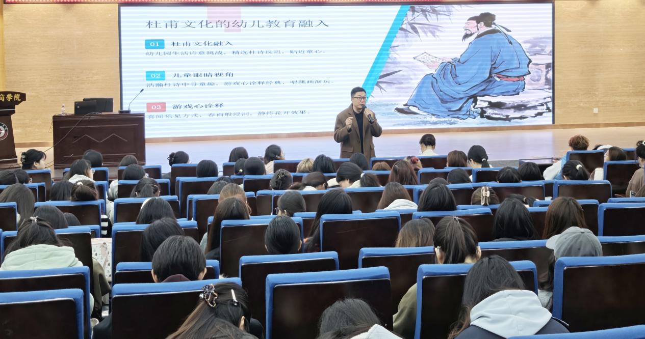 在传统文化与现代教育深度融合的时代背景下,此次以杜甫文化与学前教育融合为主题的讲座,宛如一场及时雨,为同学们及学院的发展带来了深远且积极的影响,具有多维度的重大意义。