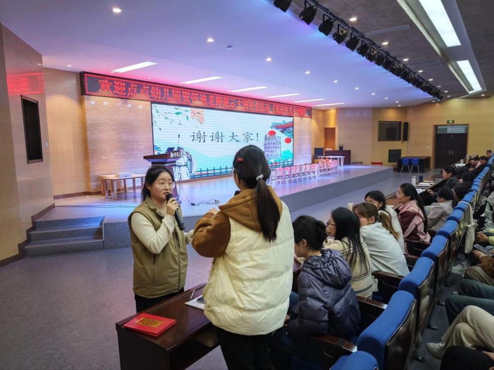 为创新人才培养模式,强化学生的实践教学能力,10月28日我院学前教育专业举办了一场独具匠心的实习实训主题讲座。本次活动特邀巩义市点点幼儿园的优秀教师贺钰迪与张威园长联袂出席,通过生动的课堂展示与深刻的理念分享,为在场师生带来了一场关于幼儿教育的知识盛宴,呈现了幼儿教育的魅力与深度。