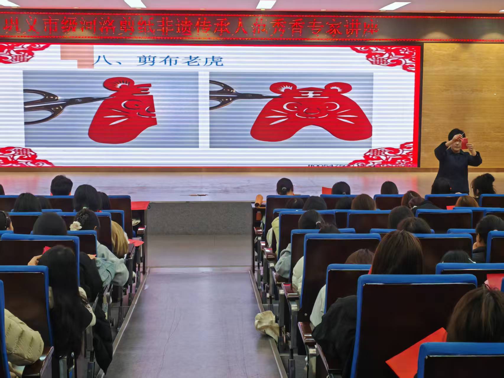 范老师还分享了剪纸艺术家库淑兰、刘晓娟等人的感人事迹。他们坚韧的品格与艺术追求为师生树立了价值标杆,发挥了榜样引领作用。在场师生表示,将以艺术家精神为指引,汲取力量,走好各自的人生道路。
