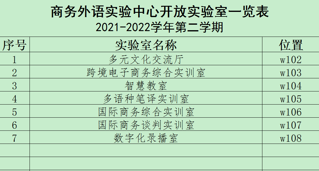 为充分利用实验室资源,培养学生的实践动手能力和创新精神,提高实验设备利用率,促进实验教学改革,培养高素质应用型人才,推进校企校地合作开展,逐步形成高素质创新人才培养的新机制,根据《999策略白菜手机论坛实验室开放管理方案》文件要求,现将2021-2022学年第二学期商务外语实验中心开放工作具体通知如下: