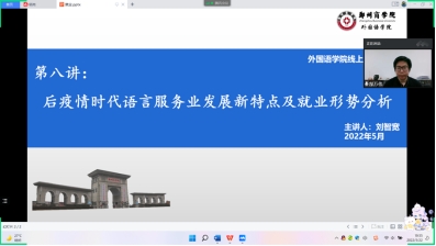 为落实外国语学院“三连贯一融合”翻译型人才培养理念,坚持专业教育与行业发展相结合,加强学生对翻译行业与岗位需求的认识,外国语学院于5月22日顺利开展线上就业促进月系列活动第八讲活动。本次活动由郜万伟老师主持。