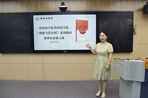 为进一步提升用英语讲好中国故事的能力,促进培养具有家国情怀、国际视野的对外传播人才,帮助新进教师提升教育教学胜任力,助力其尽快成长为一名合格的高校教师。8月26至9月6日,外国语学院在外语大楼举办了《理解当代中国》系列教材进课堂新进教师讲课大赛。本次比赛分为初赛和复赛两个阶段,共有14位新进教师参加。外国语学院院长邱培磊、副院长赵保成以及教授代表、各教研室主任担任评委。