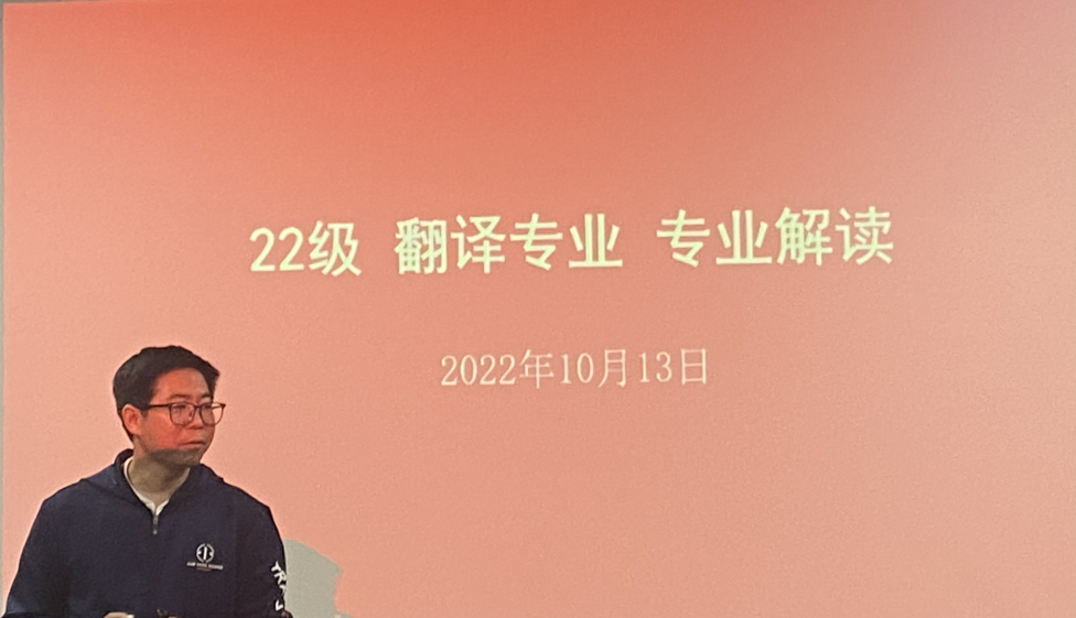 2022年10月13日晚18:00,翻译专业教研室为22级翻译专业学生进行了专业解读,帮助学生更好地去了解翻译专业,更好的规划今后4年的学习之路。