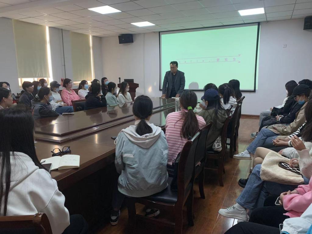 2022年10月21日上午8:20,翻译专业20级学生在外语楼会议室举行了考研动员会。外国语学院副院长赵保成、翻译专业教研室主任郜万伟、翻译教研室的别韶冰、杨情、张伟红、栗蔷薇等老师、以及20级翻译专业学生参加了会议。