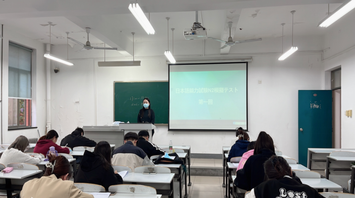 为促进学院教风学风建设,帮助学生提前适应N2考试,使同学们加强对日语学习的重视,熟悉考试程序,了解自己的学习水平,提高考试通过率,10月21日下午,外国语学院日语专业组织开展日语N2模拟测试。本次考试由日语专业教师张洋、张诗笛、刘晓昱担任监考官,2020级、2021级和2022级学生共42人参加了此次考试。