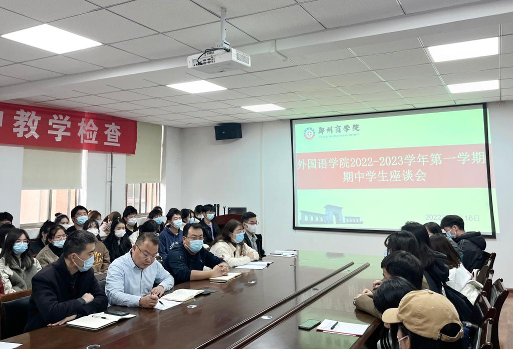 保障学生的学习是我院工作的重中之重,本次座谈会的成功举办不仅是对我院2022-2023学年第一学期期中学习工作的总结,更对我院下一阶段学生学习工作的开展、学习环境的改善、学习风貌的提高具有切实的指导作用。外语学院将继续贯彻“以生为本”的服务理念,落实立德树人根本任务,培育良好学习风气,营造良好育人环境,保障教学与育人质量不断提升。