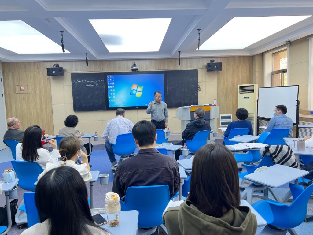 本次比赛主要由“课程说课”和“现场答辩”两部分组成,共计10分钟,选手按抽签顺序依次进行展示。共11位选手进入复赛,评委依照百分制形式现场为选手打分,依据评分标准选出前6名进入决赛。比赛材料为统一教学材料《理解当代中国》读写教程第八单元Harmony Without Uniformity,参赛教师需进行相应的教学设计、课件制作,进行7-10分钟说课并回答评委问题。